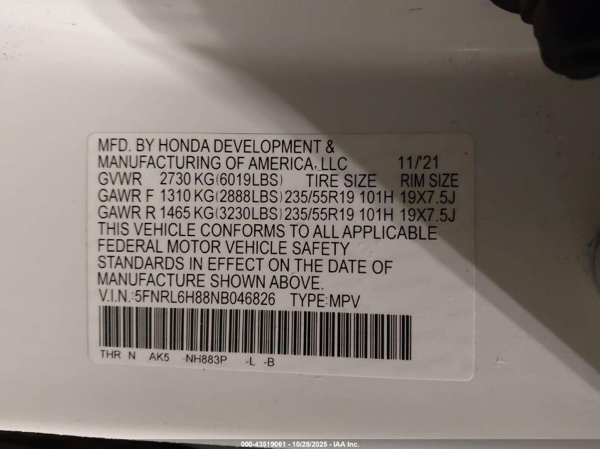 2022 HONDA ODYSSEY ELITE