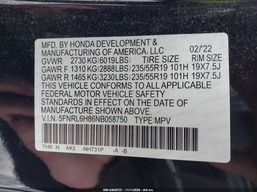 2022 HONDA ODYSSEY TOURING