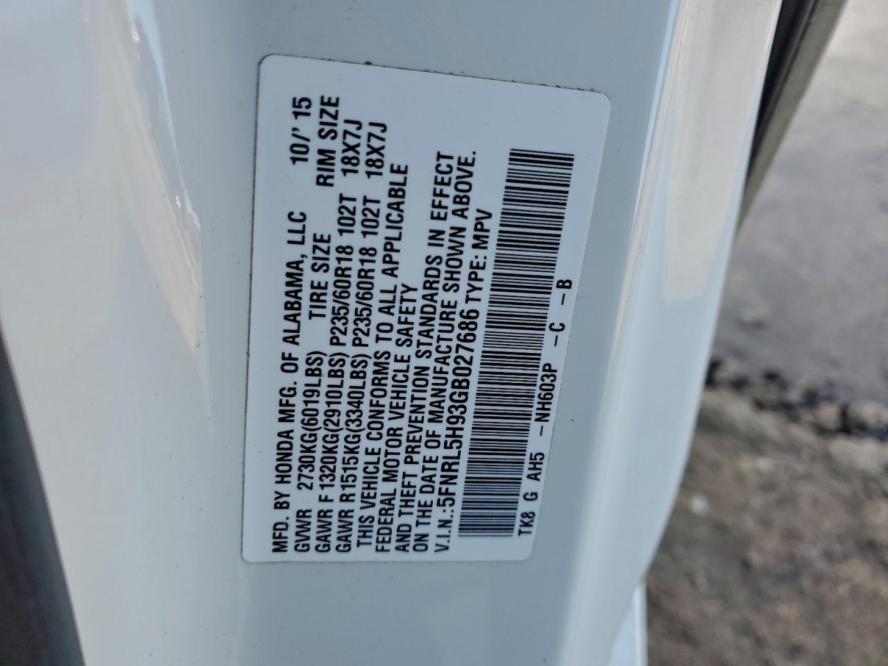 Колір БілийЦиліндри 6VIN 5FNRL5H93GB027686Стан Заводиться та їде (перевірено)Ушкодження Задня AutoRIA