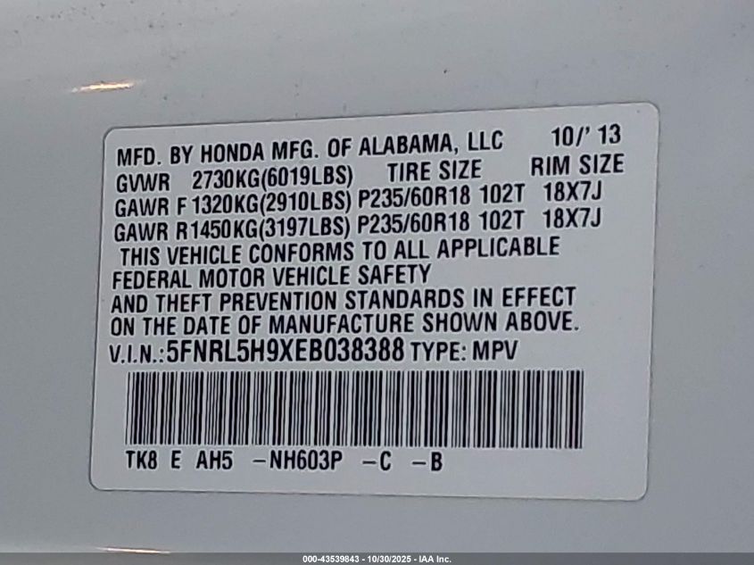 Колір ЧорнийЦиліндри 6Привід Передній привідVIN 5FNRL5H9XEB038388Стан Заводиться та їде (перевірено)Ушкодження Передня або задня AutoRIA