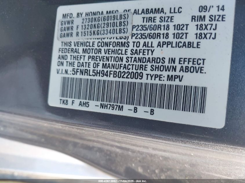 2015 HONDA ODYSSEY 2015 року Бензин, 3.5, Передній привід, vin - 5FNRL5H94FB022009 з США