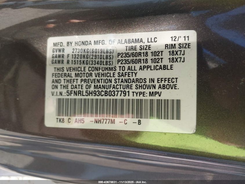 Колір СірийЦиліндри 6Привід Передній привідVIN 5FNRL5H93CB037791Стан Заводиться та їде (перевірено)Ушкодження Передня або задня AutoRIA