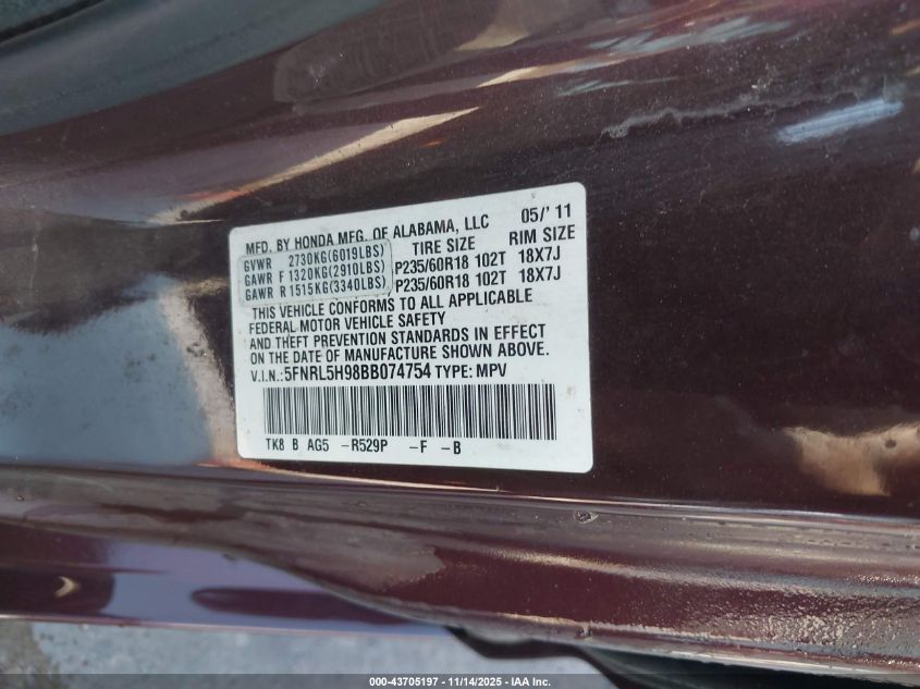 Колір БургундіяЦиліндри 6Привід Передній привідVIN 5FNRL5H98BB074754Стан Заводиться та їде (перевірено)Ушкодження Звичайний знос AutoRIA