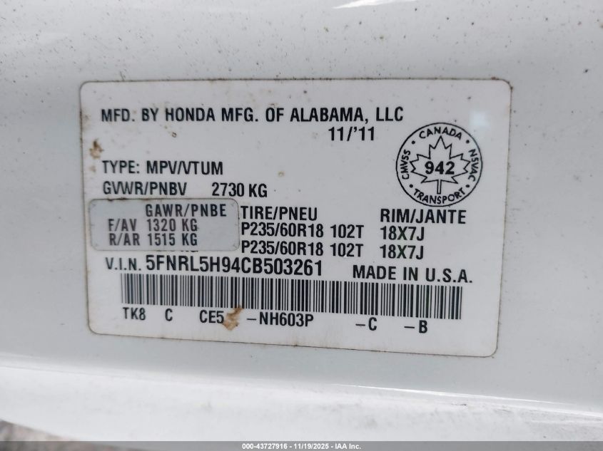 Колір БілийЦиліндри 6Привід Передній привідVIN 5FNRL5H94CB503261Стан Заводиться та їде (перевірено)Ушкодження Передня або задня AutoRIA