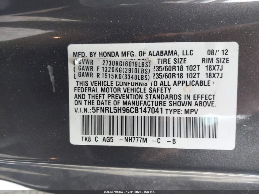 Колір СірийЦиліндри 6Привід Передній привідVIN 5FNRL5H96CB147041Стан Заводиться та їде (перевірено)Ушкодження Передня або задня AutoRIA