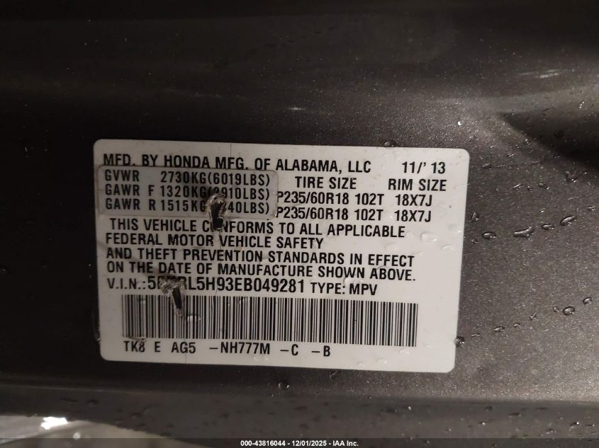 Колір КоричневийЦиліндри 6Привід Передній привідVIN 5FNRL5H93EB049281Стан СтаціонарноУшкодження Передня або задня AutoRIA