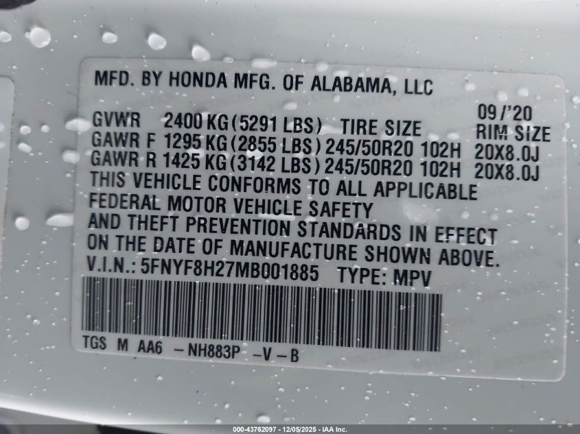 2021 HONDA PASSPORT 2021 року Бензин, 3.5, Повний привід, vin - 5FNYF8H27MB001885 з США