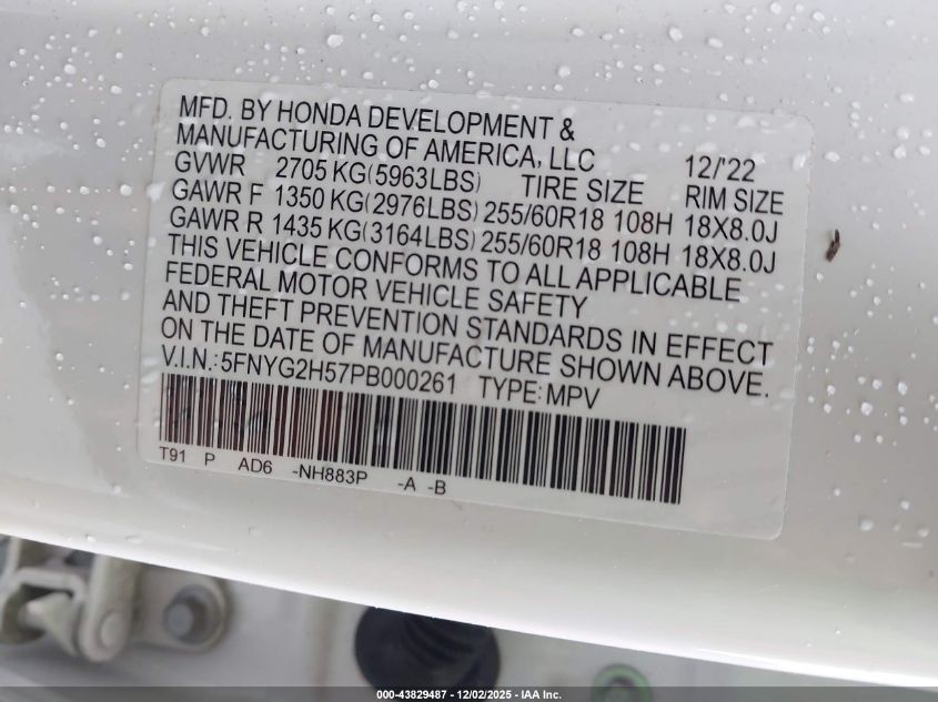 2023 HONDA PILOT 2023 року Бензин, 3.5, Передній привід, vin - 5FNYG2H57PB000261 з США