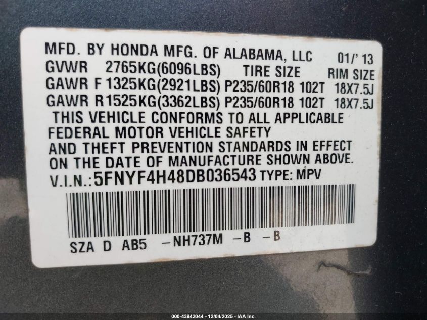2013 HONDA PILOT 2013 року Бензин, 3.5, Повний привід, vin - 5FNYF4H48DB036543 з США