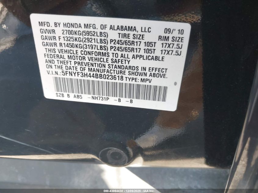 Колір ЧорнийЦиліндри 6Привід Передній привідVIN 5FNYF3H44BB023618Стан СтаціонарноУшкодження Незначні AutoRIA