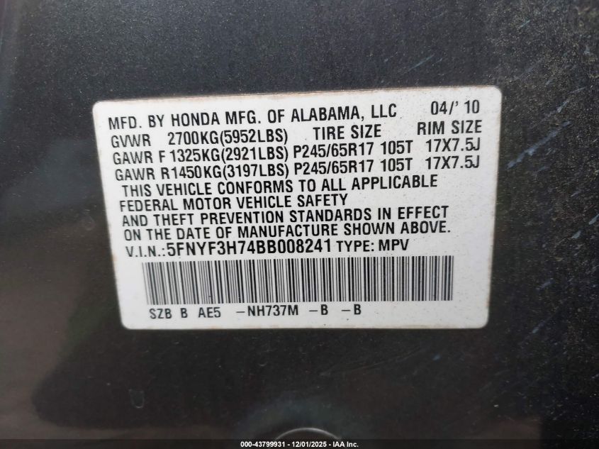 Колір СірийЦиліндри 6Привід Передній привідVIN 5FNYF3H74BB008241Стан Заводиться та їде (перевірено)Ушкодження Передня або задня AutoRIA
