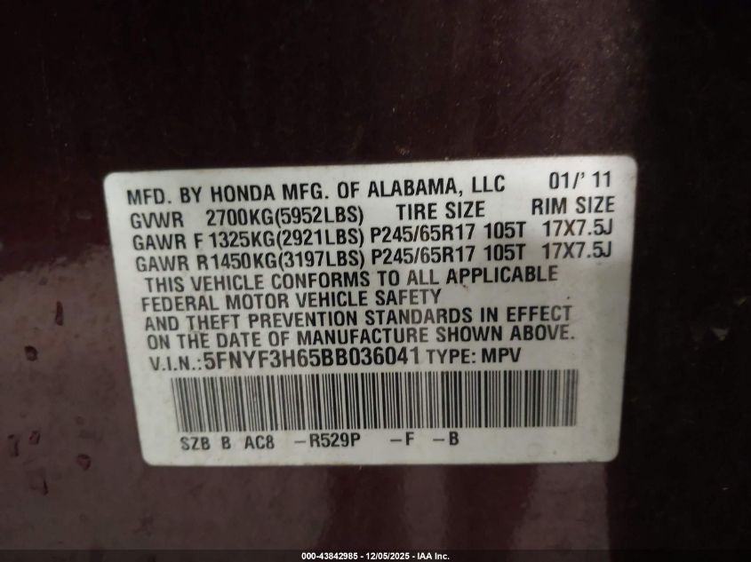 2011 HONDA PILOT 2011 року Бензин, 3.5, Передній привід, vin - 5FNYF3H65BB036041 з США