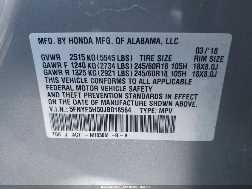2018 HONDA PILOT 2018 року Бензин, 3.5, Передній привід, vin - 5FNYF5H50JB018564 з США