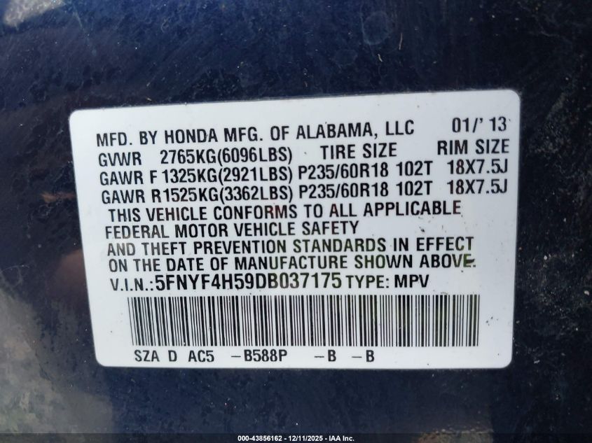 2013 HONDA PILOT EX