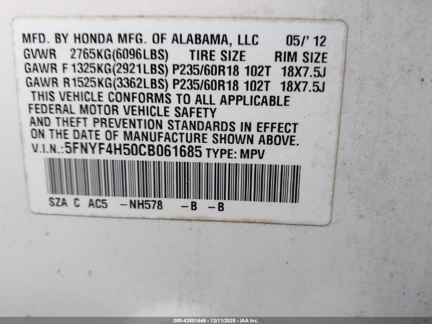 Колір Циліндри 6Привід Повний привідVIN 5FNYF4H50CB061685Стан НевідомоУшкодження Передня або задня AutoRIA