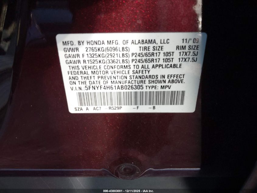 Колір ЧервонийЦиліндри 6Привід Повний привідVIN 5FNYF4H61AB026305Стан НевідомоУшкодження Передня або задня AutoRIA
