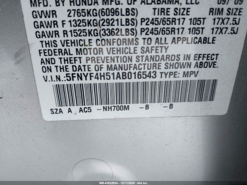 2010 HONDA PILOT 2010 року Бензин, 3.5, Повний привід, vin - 5FNYF4H51AB016543 з США