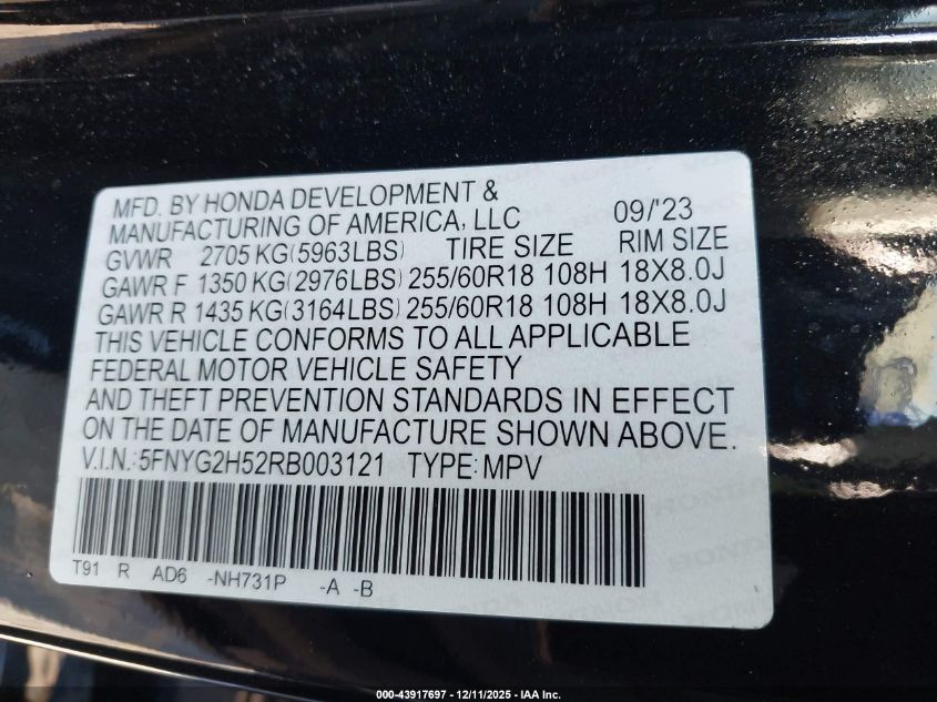 2024 HONDA PILOT 2024 року Бензин, 3.5, Передній привід, vin - 5FNYG2H52RB003121 з США