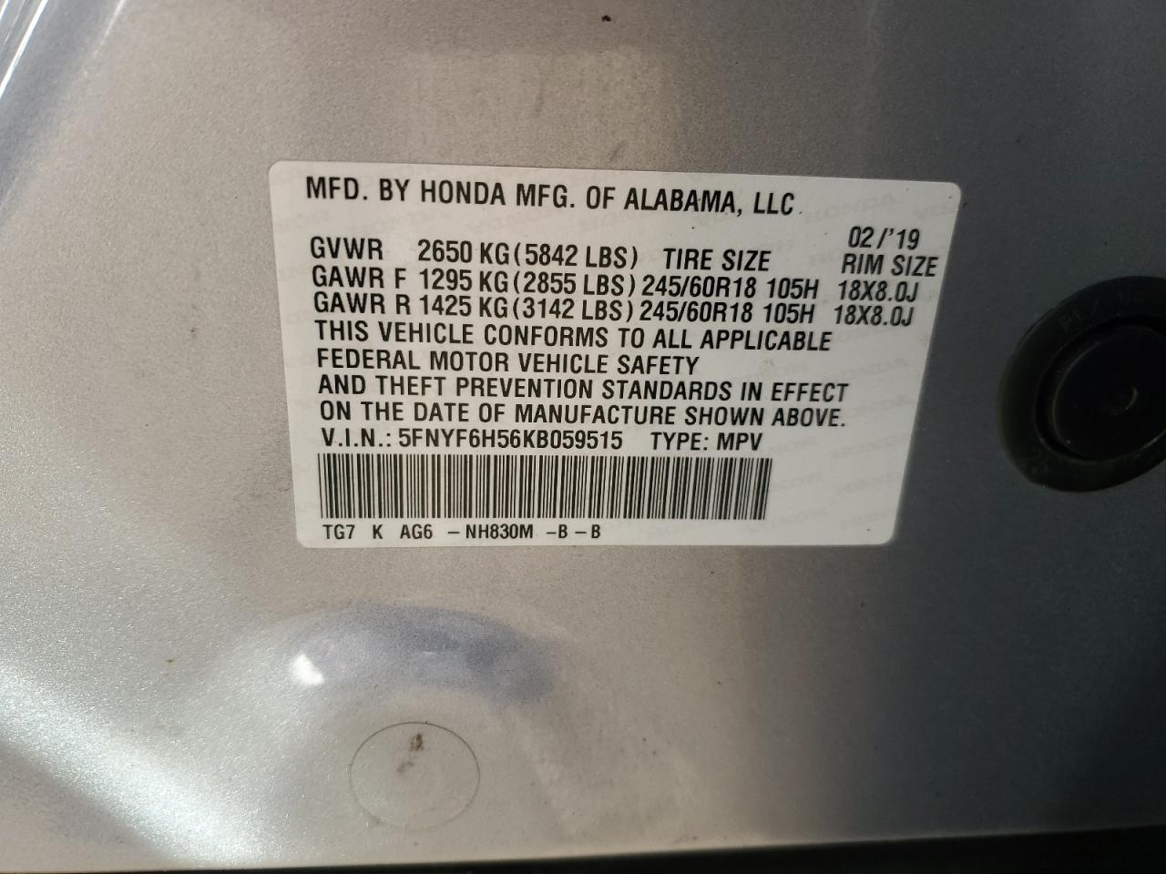 2019 HONDA PILOT 2019 року Бензин, 3.5, Повний привід, vin - 5FNYF6H56KB059515 з США