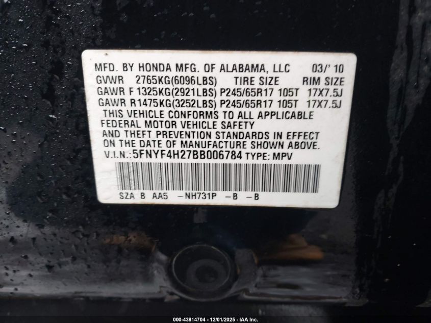 Колір ЧорнийЦиліндри 6Привід Повний привідVIN 5FNYF4H27BB006784Стан Заводиться та їде (перевірено)Ушкодження Передня або задня AutoRIA