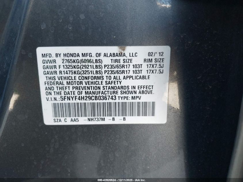 Колір Циліндри 6Привід Повний привідVIN 5FNYF4H29CB036743Стан НевідомоУшкодження Невідомо AutoRIA