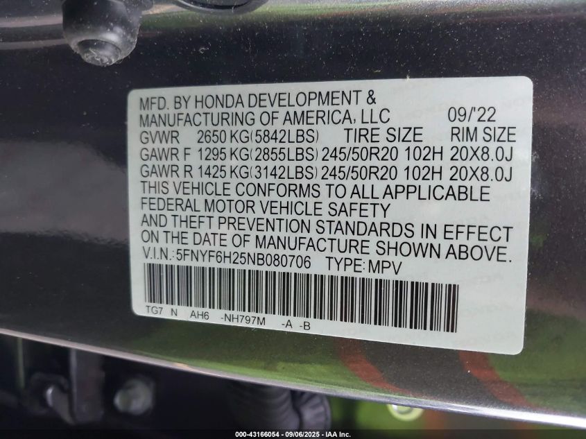 2022 HONDA PILOT 2022 року Бензин, 3.5, Повний привід, vin - 5FNYF6H25NB080706 з США