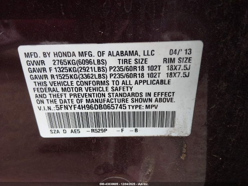 Колір БордовийЦиліндри 6Привід Повний привідVIN 5FNYF4H96DB065745Стан Заводиться та їде (перевірено)Ушкодження Передня права AutoRIA