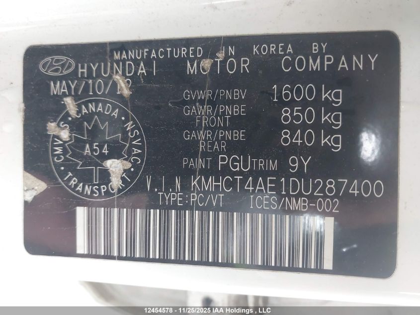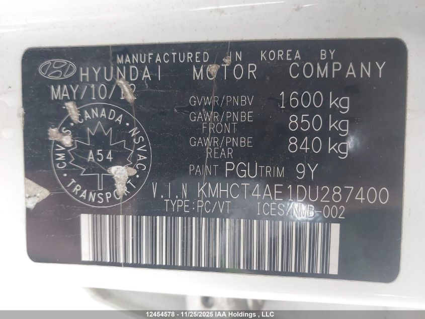 2013 HYUNDAI ACCENT 2013 року Бензин, , Передній привід, vin - KMHCT4AE1DU287400 з США