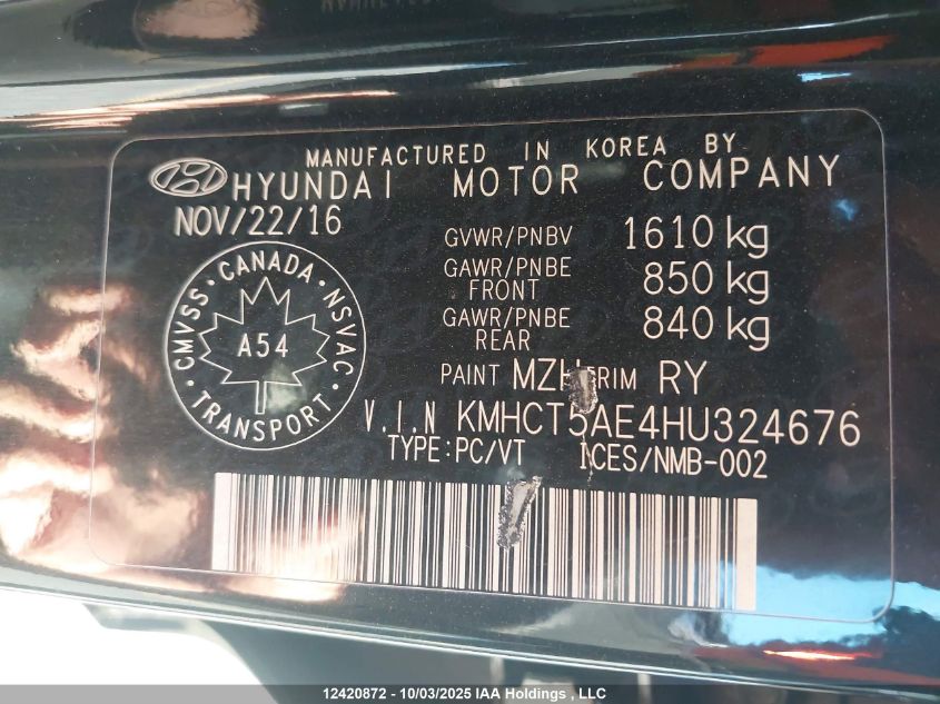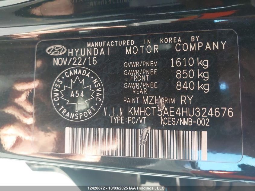 Колір ЧорнийЦиліндри 4Привід Передній привідVIN KMHCT5AE4HU324676Стан ЗаводитьсяУшкодження Права сторонаДата аукціону 2025-12-16 AutoRIA