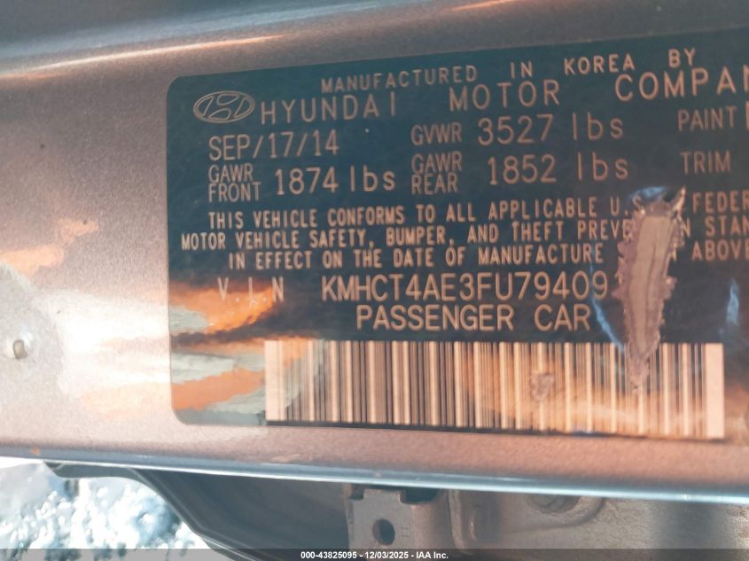 2015 HYUNDAI ACCENT 2015 року Бензин, 1.6, Передній привід, vin - KMHCT4AE3FU794091 з США