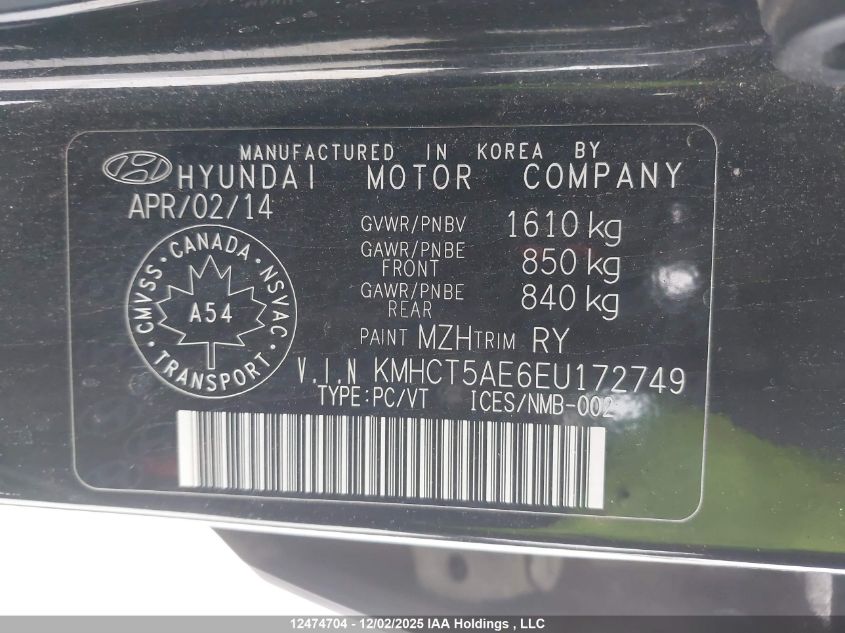 Колір ЧорнийЦиліндри 4Привід Передній привідVIN KMHCT5AE6EU172749Стан Заводиться та їде (перевірено)Ушкодження ГрадДата аукціону 2025-12-08 AutoRIA