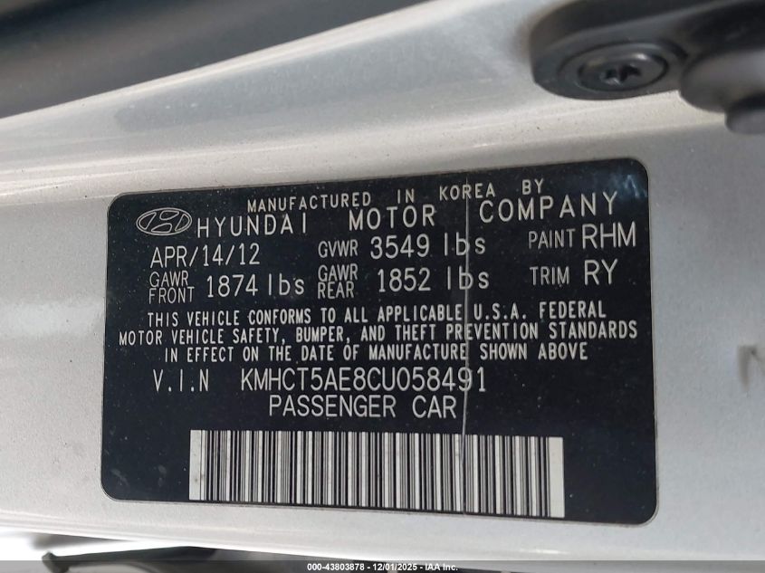 2012 HYUNDAI ACCENT 2012 року Бензин, 1.6, Передній привід, vin - KMHCT5AE8CU058491 з США