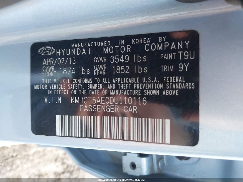 2013 HYUNDAI ACCENT 2013 року Бензин, 1.6, Передній привід, vin - KMHCT5AE0DU110116 з США