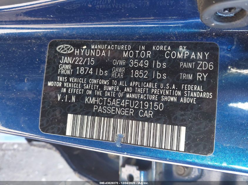2015 HYUNDAI ACCENT 2015 року Бензин, 1.6, Передній привід, vin - KMHCT5AE4FU219150 з США
