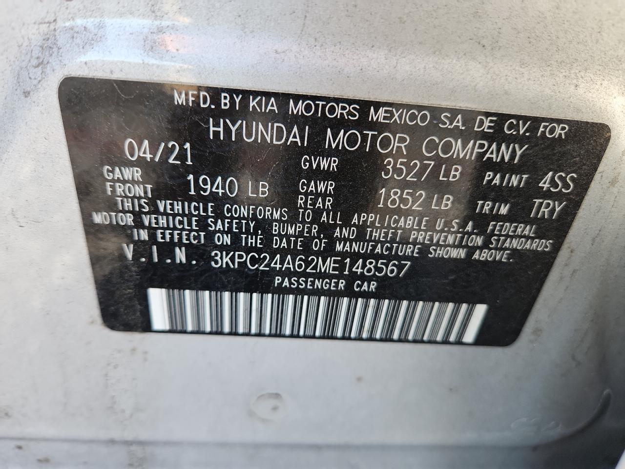 2021 HYUNDAI ACCENT 2021 року Бензин, 1.6, , vin - 3KPC24A62ME148567 з США