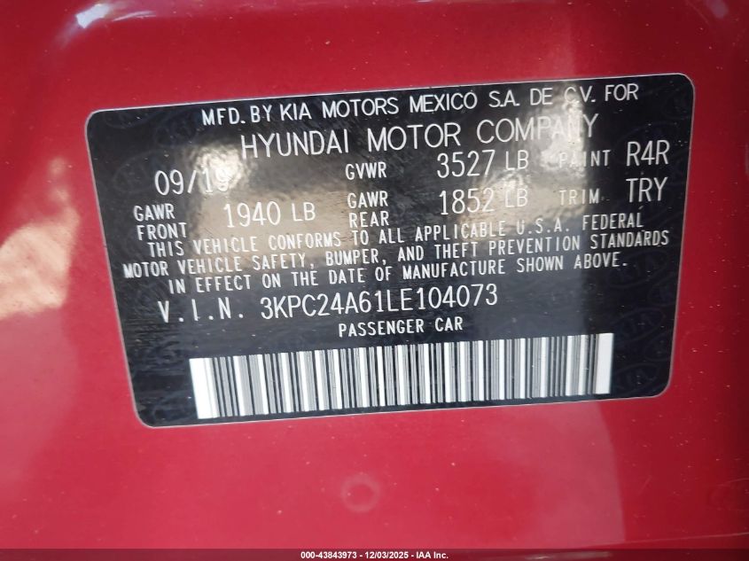 2020 HYUNDAI ACCENT 2020 року Бензин, 1.6, Передній привід, vin - 3KPC24A61LE104073 з США