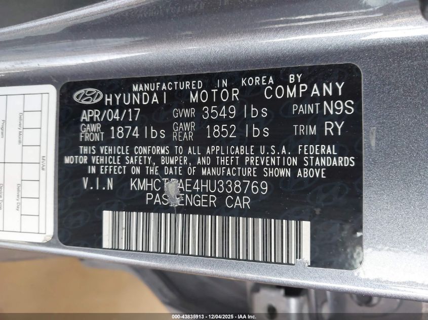 2017 HYUNDAI ACCENT 2017 року Бензин, 1.6, Передній привід, vin - KMHCT5AE4HU338769 з США