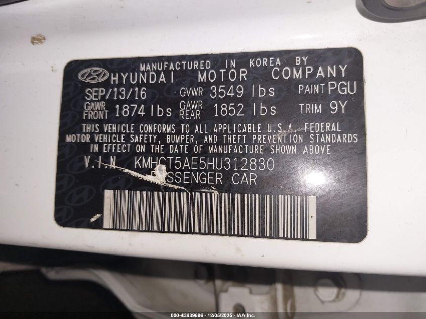 2017 HYUNDAI ACCENT 2017 року Бензин, 1.6, Передній привід, vin - KMHCT5AE5HU312830 з США
