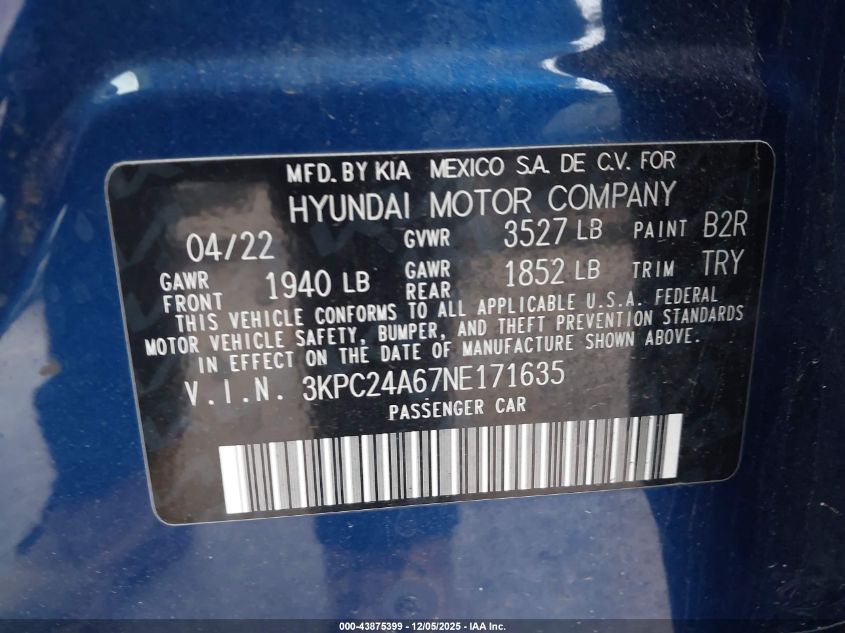 2022 HYUNDAI ACCENT 2022 року Бензин, 1.6, Передній привід, vin - 3KPC24A67NE171635 з США