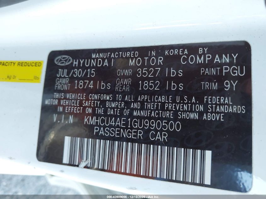 2016 HYUNDAI ACCENT 2016 року Бензин, 1.6, Передній привід, vin - KMHCU4AE1GU990500 з США