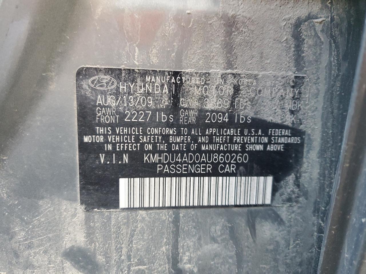 2010 HYUNDAI ELANTRA 2010 року Бензин, 2.0, , vin - KMHDU4AD0AU860260 з США