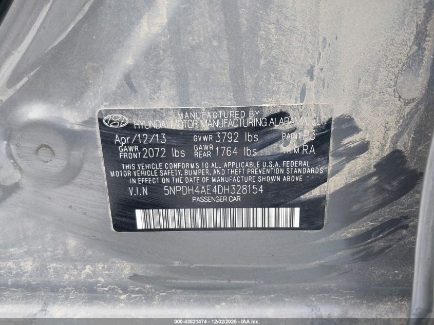 2013 HYUNDAI ELANTRA 2013 року Бензин, 1.8, Передній привід, vin - 5NPDH4AE4DH328154 з США