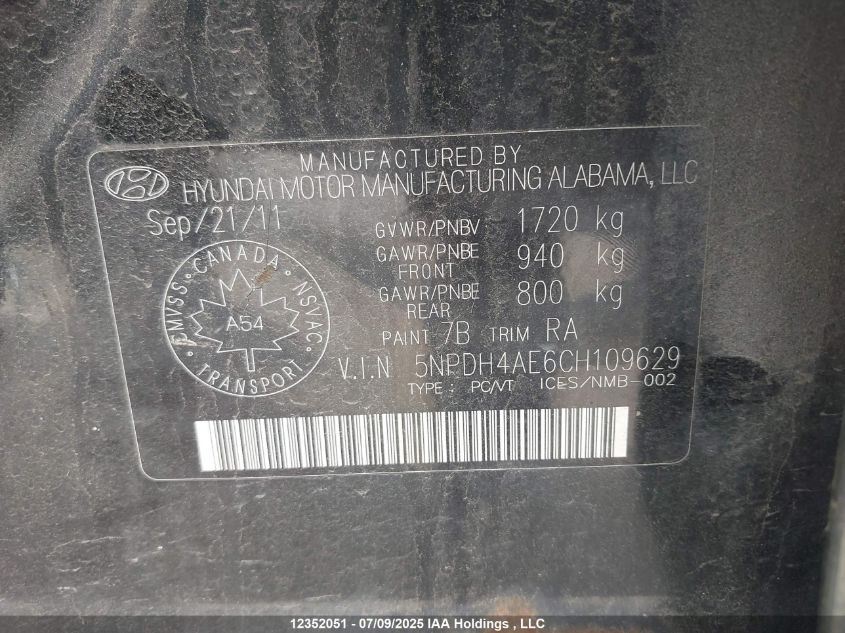 2012 HYUNDAI ELANTRA 2012 року Бензин, , Передній привід, vin - 5NPDH4AE6CH109629 з США