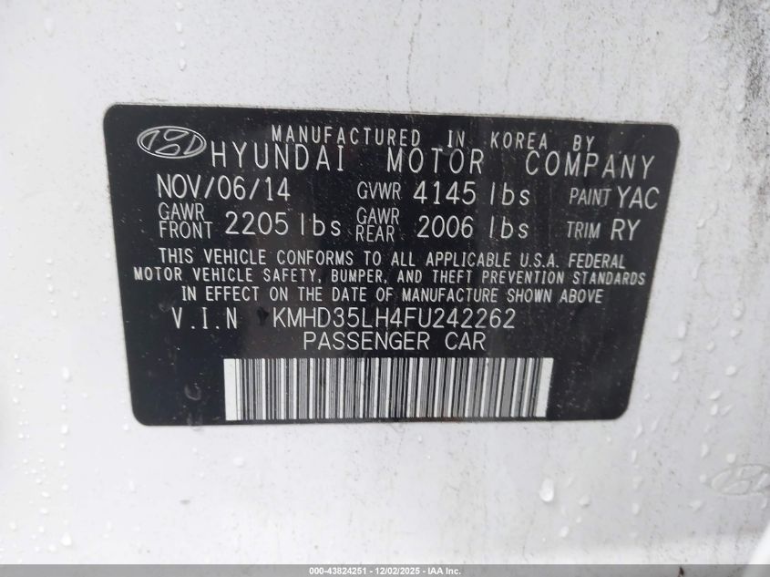 2015 HYUNDAI ELANTRA 2015 року Бензин, 2.0, Передній привід, vin - KMHD35LH4FU242262 з США