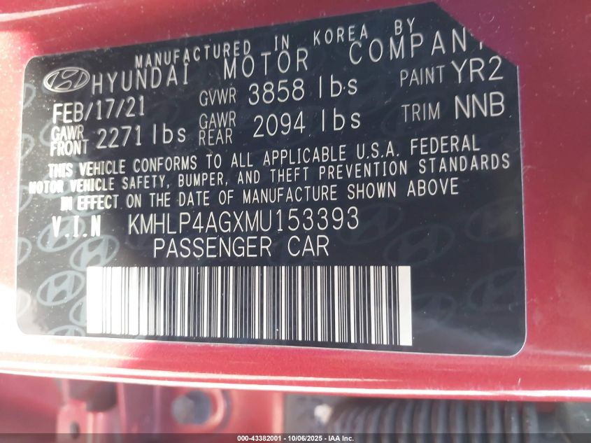 2021 HYUNDAI ELANTRA 2021 року Бензин, 2.0, Передній привід, vin - KMHLP4AGXMU153393 з США