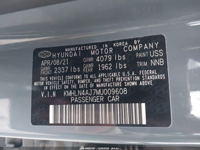 2021 HYUNDAI ELANTRA 2021 року Гібрид, 1.6, Передній привід, vin - KMHLN4AJ7MU009608 з США