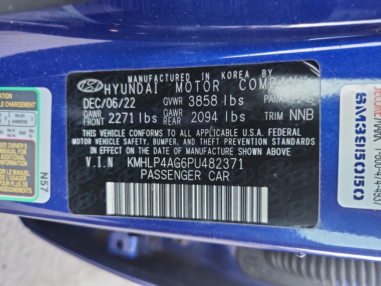 2023 HYUNDAI ELANTRA 2023 року Бензин, 2.0, , vin - KMHLP4AG6PU482371 з США