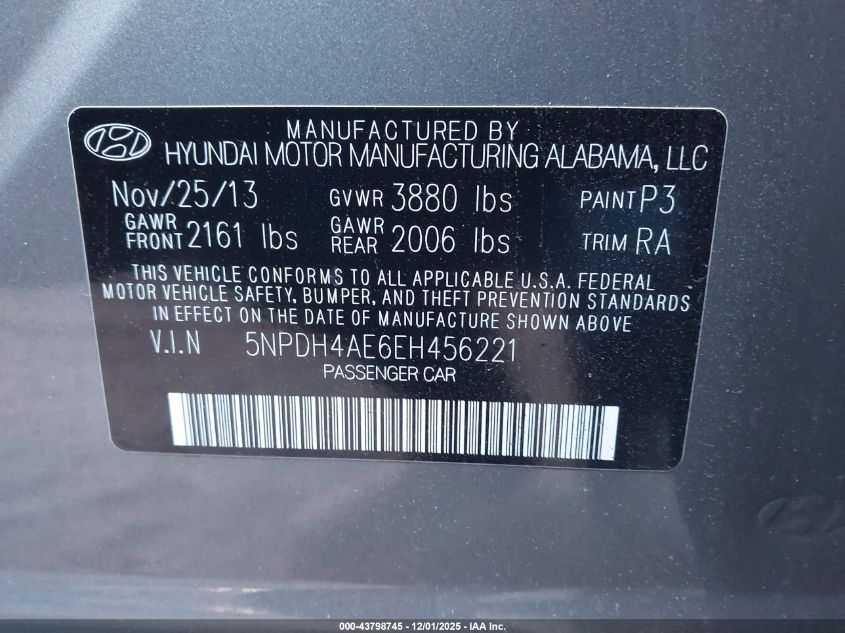 2014 HYUNDAI ELANTRA 2014 року Бензин, 1.8, Передній привід, vin - 5NPDH4AE6EH456221 з США