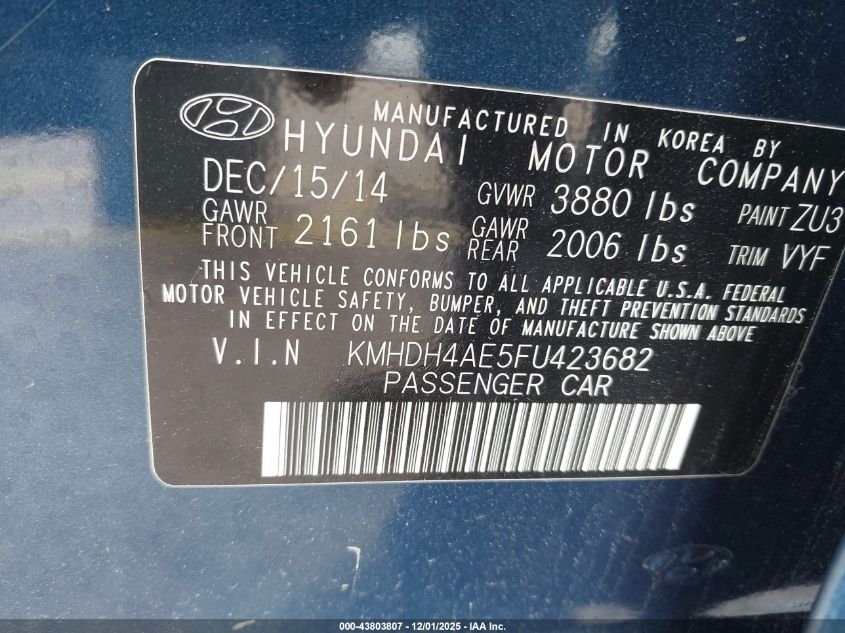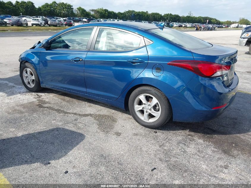 2015 HYUNDAI ELANTRA 2015 року Бензин, 1.8, Передній привід, vin - KMHDH4AE5FU423682 з США