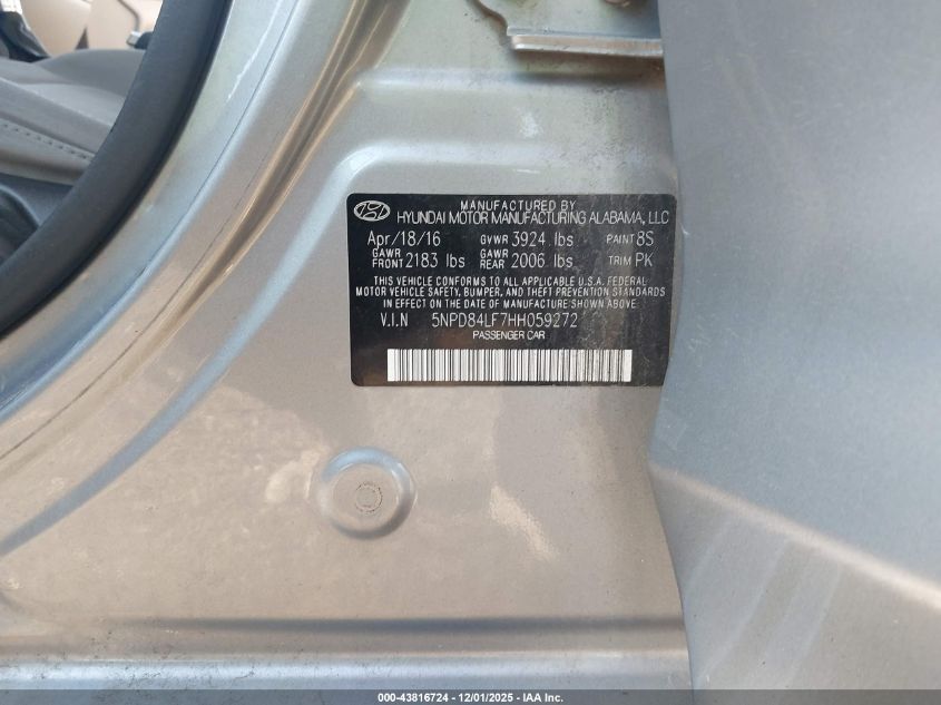 2017 HYUNDAI ELANTRA 2017 року Бензин, 2.0, Передній привід, vin - 5NPD84LF7HH059272 з США